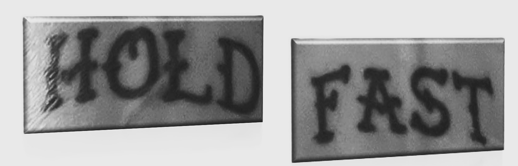 Hold Fast is command given to the ship’s crew for them to hold on to a solid fitting, such as ropes or rails, to avoid being swept overboard, especially during a storm. It means to “hold tight” or “grip firmly,” originating from the Dutch term “houd vast,”. Hold fast is an idiom which per Wiktionary, means, “To stubbornly resist assault, pressure or opposition, either physically or mentally.” Ie. stand one’s ground or stay the course. However, stubborn resistance is not illogical, rather is an adherence to conviction, reminding one to maintain perseverance, composure, and be steadfast when we confront challenging obstacles and to weather the storm. It is about a lack of fear and unwavering strength. Through challenges, we can remain true to principles, and have tenacity to withstand difficult times, Wikipedia, discussing sailors’ superstitions, notes that sailors historically would tattoo the words ‘HOLD FAST’ on their knuckles to prevent them from falling aloft. This trend is seen in our modern times with the words hold fast tatted on knuckles in Sailor Jerry font.